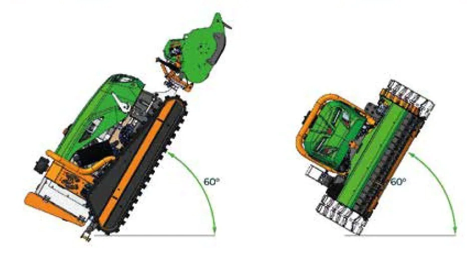 内蔵のサイドシフターにより、下部クローラーの外側で操作することで障害物を容易に回避できます。これにより、起伏の多い作業現場での作業が可能になり、操縦時間を短縮し、植物や対象物を損傷から守ります。