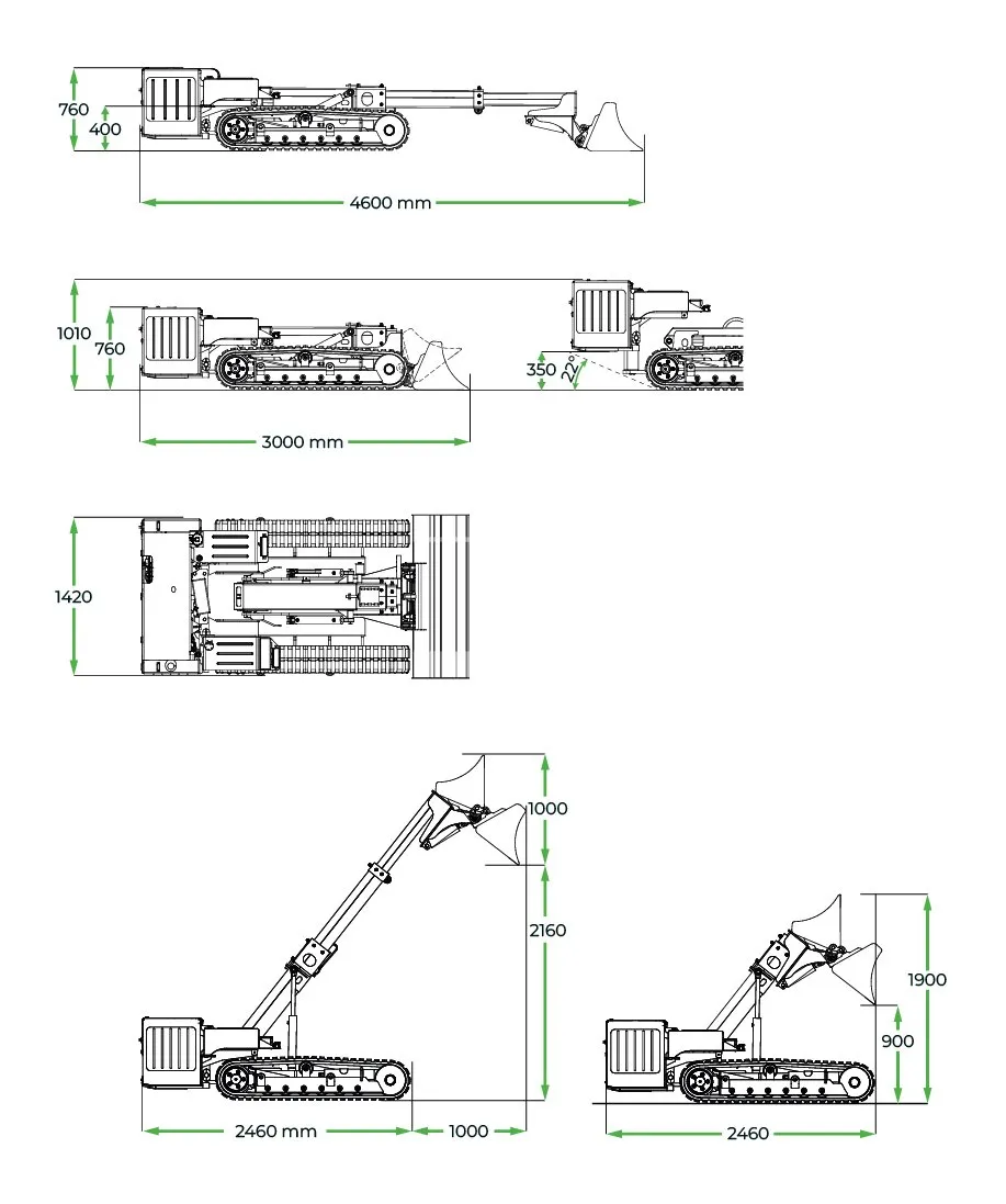 ポケットバケットは、逆転ファンと拡張熱交換器により、高温のほこりの多い環境でも最大出力で連続動作が可能です。ラジエータの自己洗浄システムは、メンテナンス時間を短縮し、燃料消費を最適化し、過熱を防ぎ、常に最高の性能を保証します。